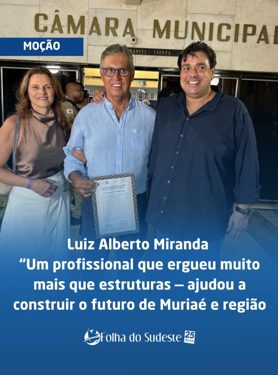 A Moção de Congratulações e Aplausos Nº 22/2026 em reconhecimento à sua notável trajetória profissional, contribuição ao desenvolvimento econômico e social de Muriaé e relevante atuação na área da construção civil. Nasceu em 01 de março de 1962, em Muriaé, filho de Sebastião Branco de Miranda e Maria de Lourdes Cascardo Miranda. Graduou-se em Engenharia Civil no ano de 1984, pela Universidade Veiga de Almeida, no Rio de Janeiro. É casado com Maria Rosária Eudóxia, com quem constituiu uma bela família, sendo pai de Arthur Biagio, Isabela, Giuliano e Gabriel, e avô do pequeno Vicente. Retornando à sua cidade natal, fundou, em 1985, a empresa Miranda Engenharia, inicialmente especializada em cálculos estruturais para obras civis. Em 1998, diante da expansão de sua atuação em projetos e execuções civis e estruturais, a empresa passou a denominar-se Estrutural Miranda Construtora Ltda., consolidando-se como referência no setor. Ao longo de mais de 40 anos de dedicação à construção civil, participou de inúmeros projetos de grande relevância em Minas Gerais e no Rio de Janeiro, incluindo hospitais, fábricas e empreendimentos imobiliários. Dentre essas obras, destaca-se de forma especial a construção do Hospital do Câncer da Fundação Cristiano Varella, empreendimento de imensurável importância social para Muriaé e toda a região. Atualmente, além de permanecer à frente da Estrutural Miranda e Construtora, é proprietário da Concretop, empresa de concreto usinado que atua há 15 anos em Muriaé, com centrais dosadoras também em Piraúba, Rio Pomba, Bicas, Juiz de Fora e Barbacena, Itaperuna e Santo Antônio de Pádua. Uma empresa estratégica para o desenvolvimento de Muriaé, sendo responsável pela geração de empregos diretos e indiretos, fortalecimento da economia local e contribuição significativa para o crescimento da infraestrutura urbana e da construção civil município.