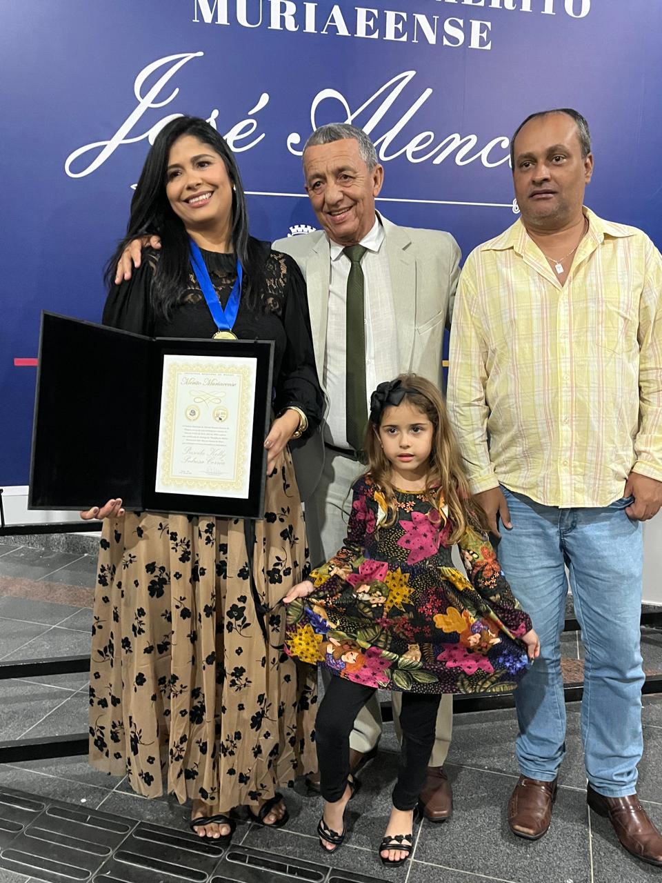 Priscila Kelly recebeu a Comenda José Alencar das mãos do seu pai o Vereador Devail Gomes Corrêa e do prefeito Dr. Marcos Guarino