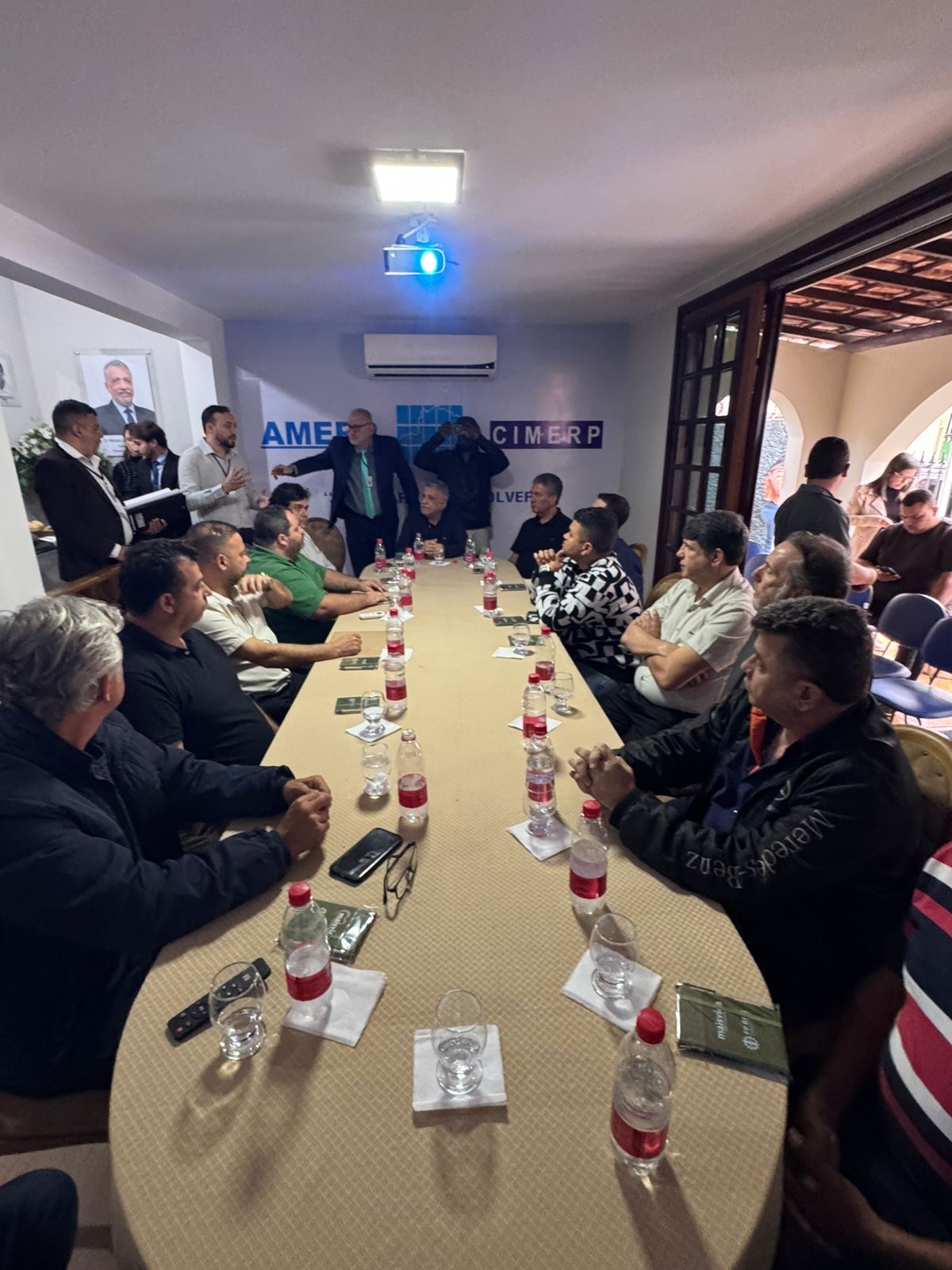 Diversos prefeitos, vices, secretários municipais, entre outras autoridades estiveram em Muriaé durante toda a tarde e início da noite de ontem cumprindo uma intensa programação que começou na sede Amerp, onde foi apresentada aos convidados a Unidade II da Associação, que congrega todo seu Administrativo e onde foi inaugurada a Galeria dos Ex-Presidentes. Após realizarem uma assembleia para deliberação de várias ações na Amerp e no Cimerp, conduzida pelos presidente desta associação e deste consórcio, Dr. Marcos Guarino, prefeito de Muriaé, secretário microrregional, Evandro Hassen Freire e diretor administrativo Rodrigo Fernandes, todos seguiram para o Cisleste, onde também se reuniram em assembleia conduzida pelo presidente deste consórcio, Ricardo Maia, prefeito de Vieiras, e o diretor Renê Magalhães.