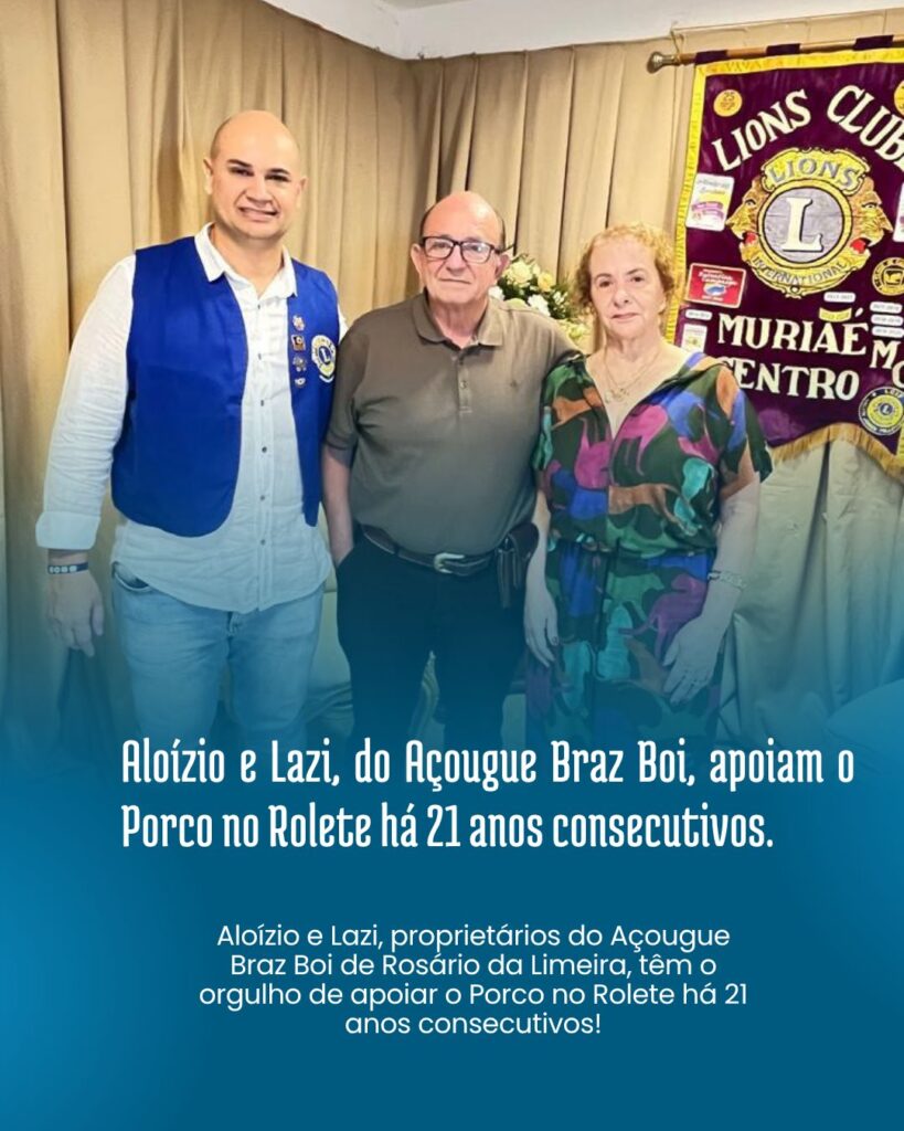 Eles parabenizam o novo presidente Dr. Fabiano Vaz e toda a diretoria do Lions Clube Muriaé Centro pelo sucesso de mais uma edição desse grande evento solidário.