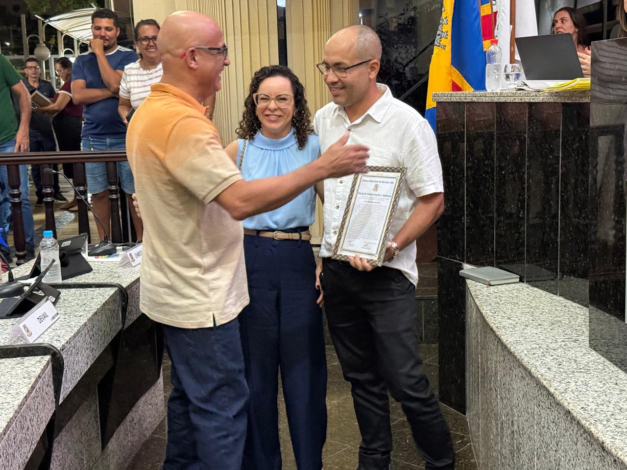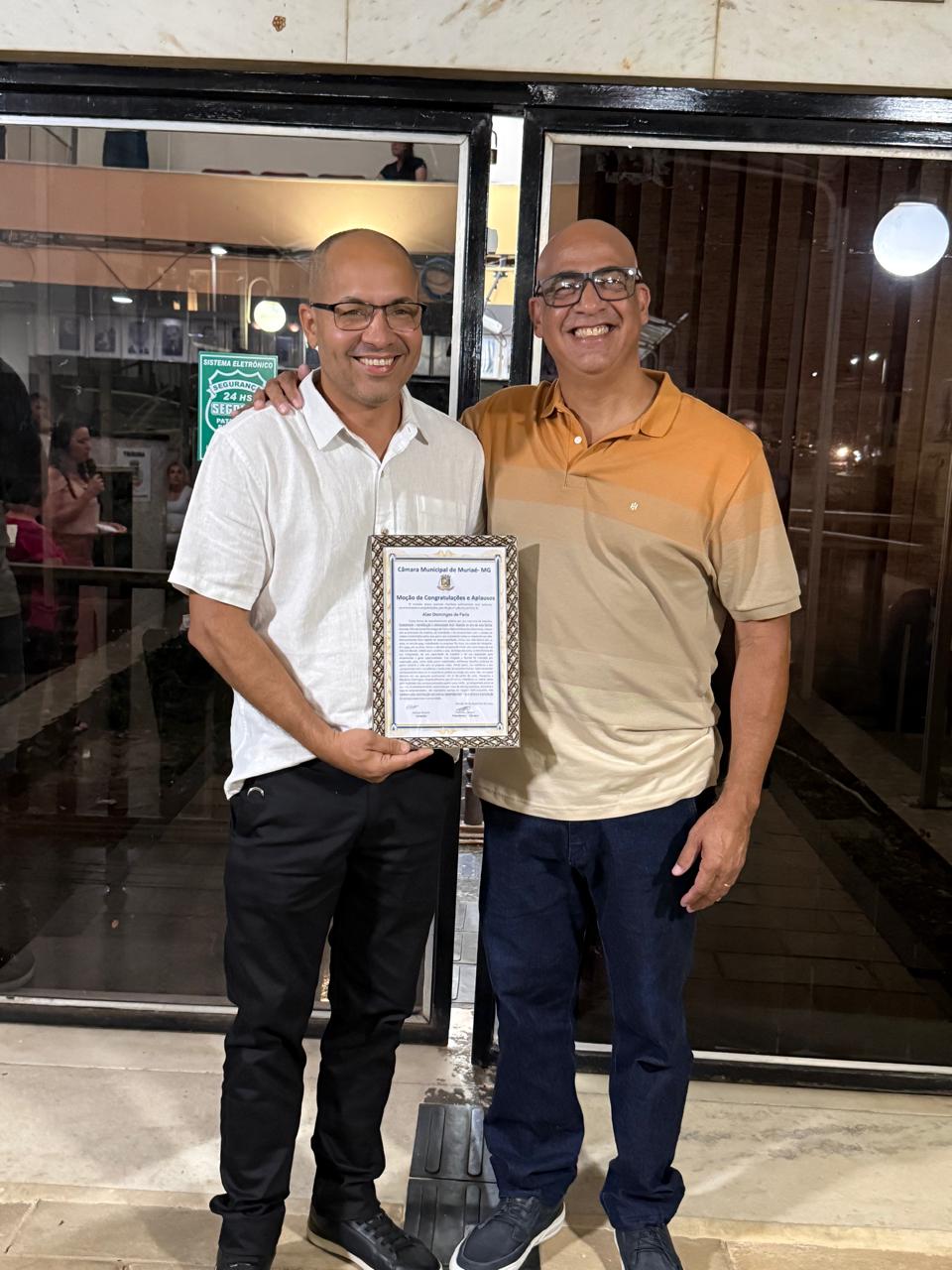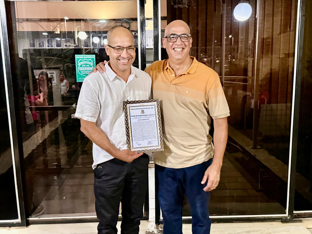 Alan Domingos, recebeu na Câmara Municipal de Muriaé, a Moção de Congratulações e Aplausos, concedida pelo vereador Adilson Duarte, na segunda-feira 8 de dezembro.
