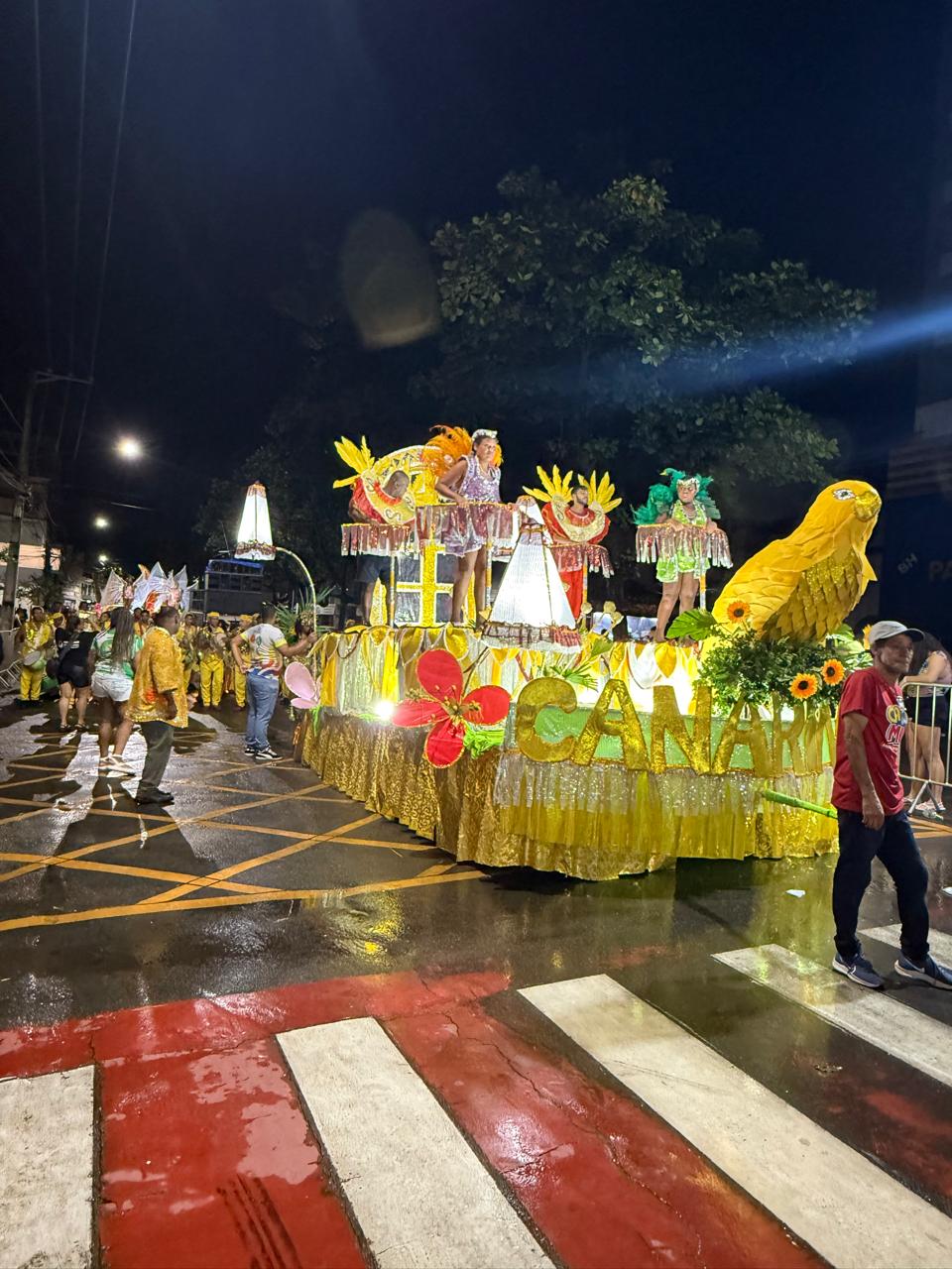 “Esse desfile aqui está sendo um dos melhores da região. Os carros estão todos muito bonitos. A gente trabalhou até três horas da manhã para poder colocar esses carros na avenida. É um trabalho árduo, mas muito gostoso, porque a gente vê o resultado na avenida”, afirmou.