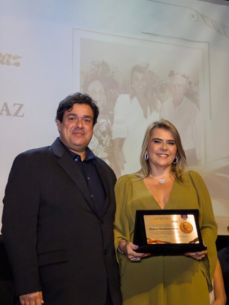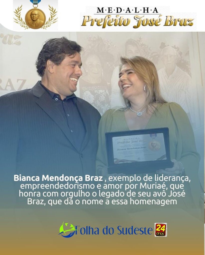 Na noite do dia 22 de outubro, aconteceu a outorga da Medalha “Prefeito José Braz 2025”, durante o evento Solene que ocorreu na Faminas, que homenageou 18 pessoas, entre a elas a jovem Bianca Braz, que é neta do saudoso José Braz, recebeu a honraria do Vereador Christian Tanus Bahia, que é o autor do projeto.