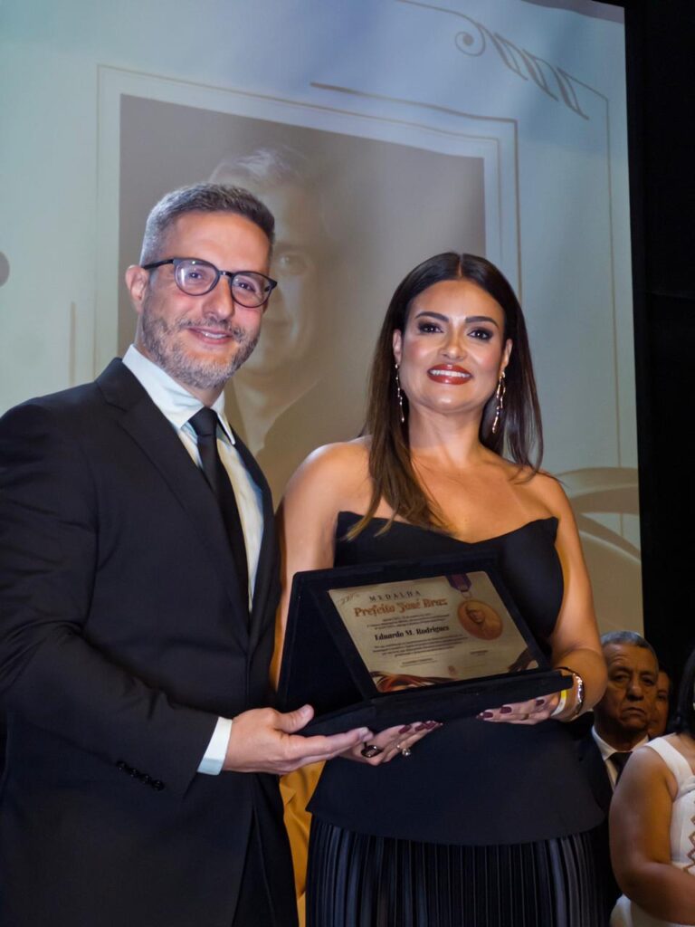 “Receber esta homenagem é motivo de muita gratidão e orgulho. Agradeço de coração ao vereador Léo Pereira pela indicação e pelo reconhecimento do nosso trabalho. Dividimos essa medalha com nossa família, nossos colaboradores e com todos que acreditam no potencial da nossa cidade”, expressou Cristiane Badaró, que representou o esposo Eduardo para receber a homenagem.